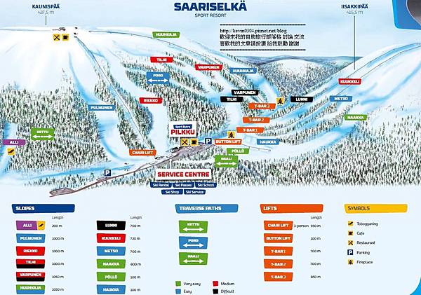 下面這張是 Saariselkä 2014 - 2015 滑雪場地圖