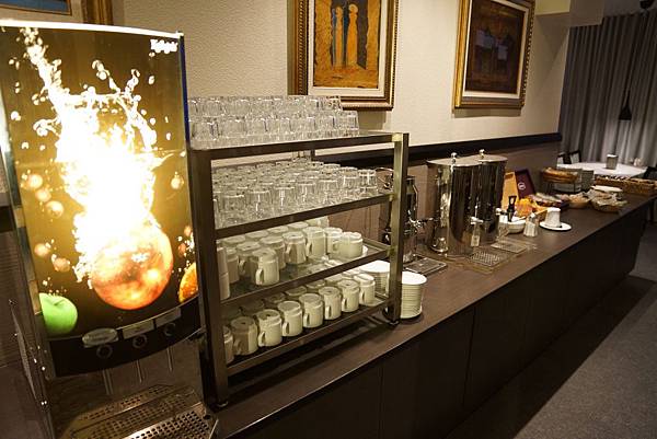 飲料區 , 有咖啡、蘋果汁、柳橙汁、茶包、水