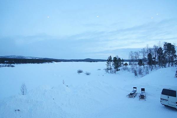 Inari 二月日出時間大約是 9 點 , 所以窗外有點暗