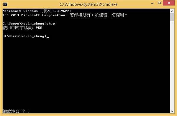 在 windows 命令提示字元裡輸入 chcp